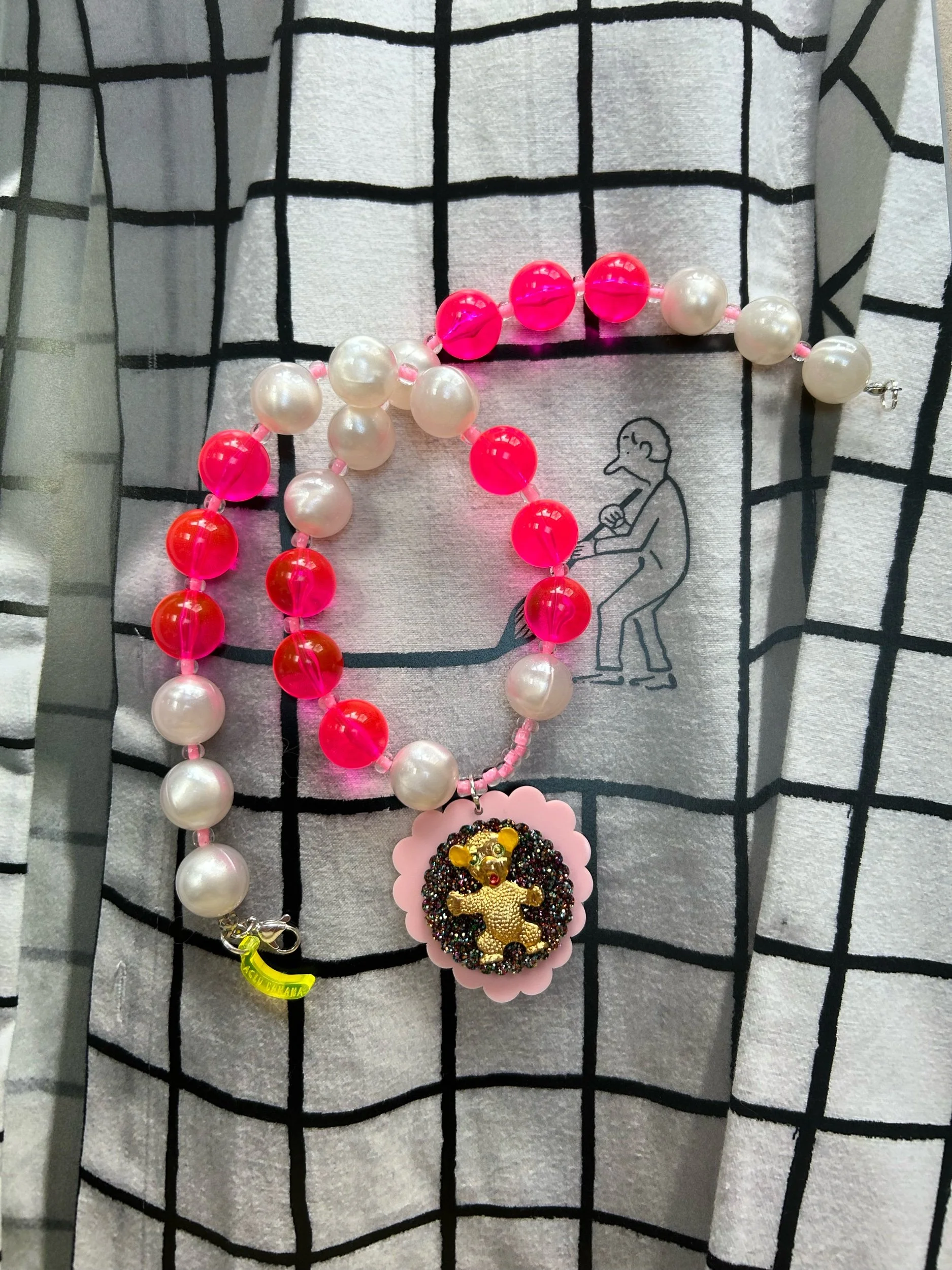 Image 1 of 1 🐻💖Repurposed Vintage Teddy Brooch Necklace🐻💖 £70.00 Repurposed vintage brooch …Mounted on acrylic shapes …Made in Germany beads .. Add To Cart Added! Repurposed vintage brooch …Mounted on acrylic shapes …Made in Germany beads ..